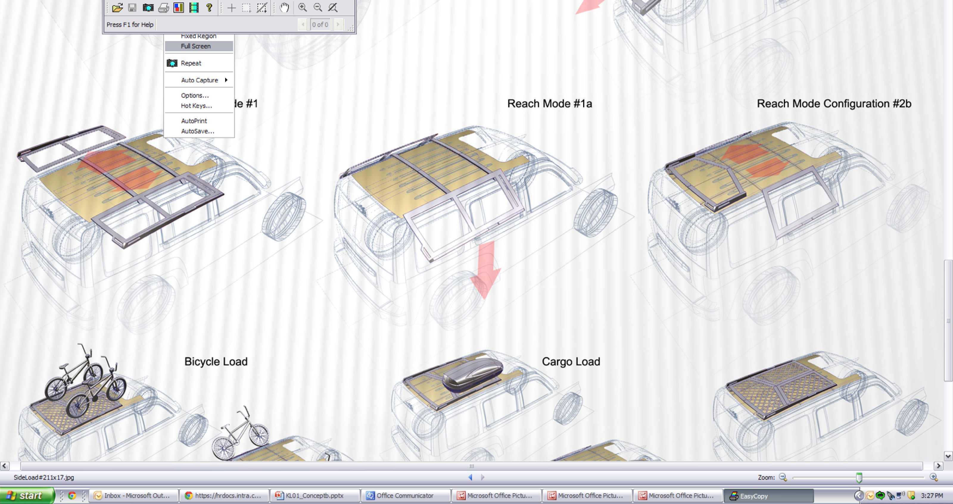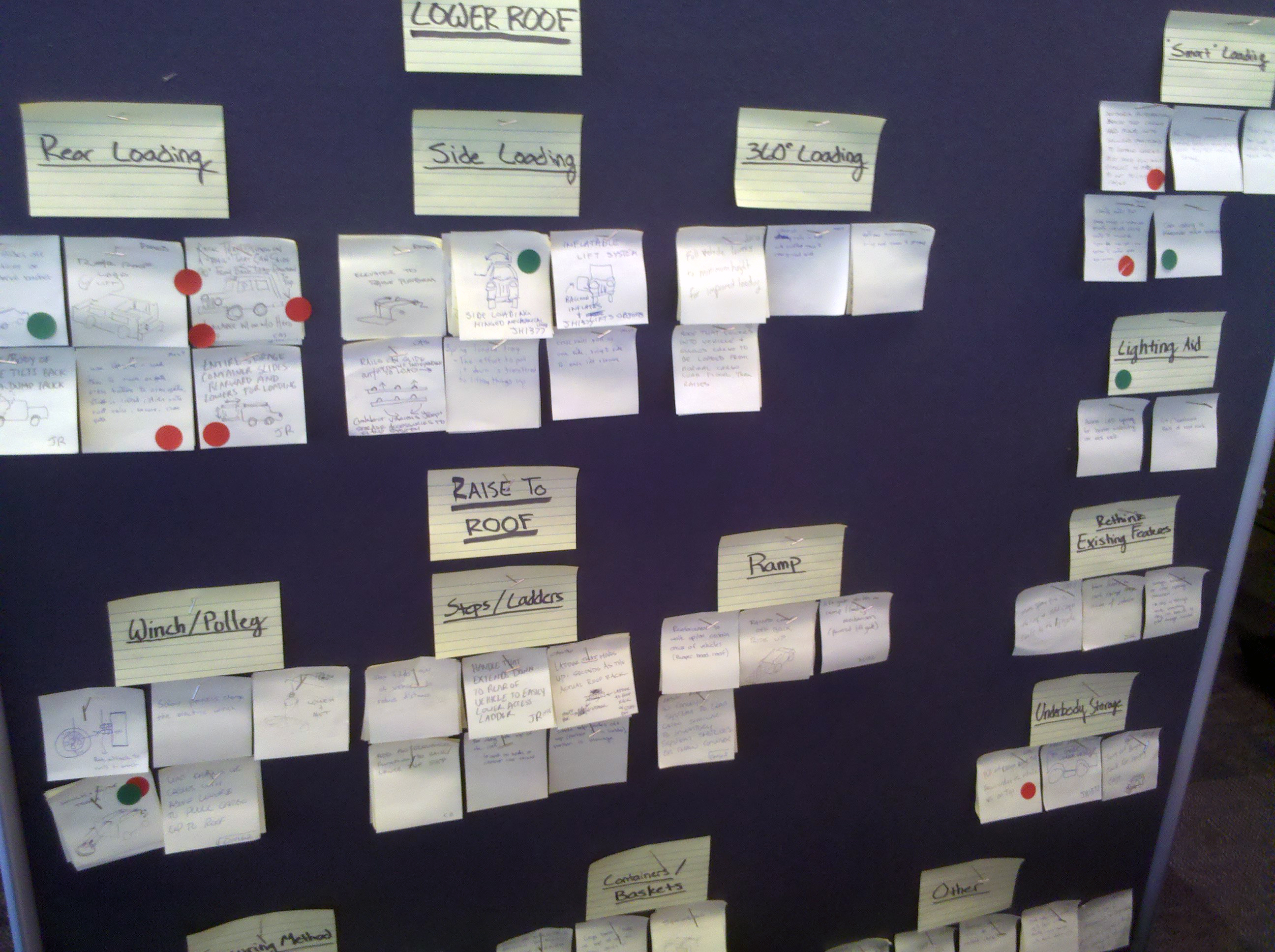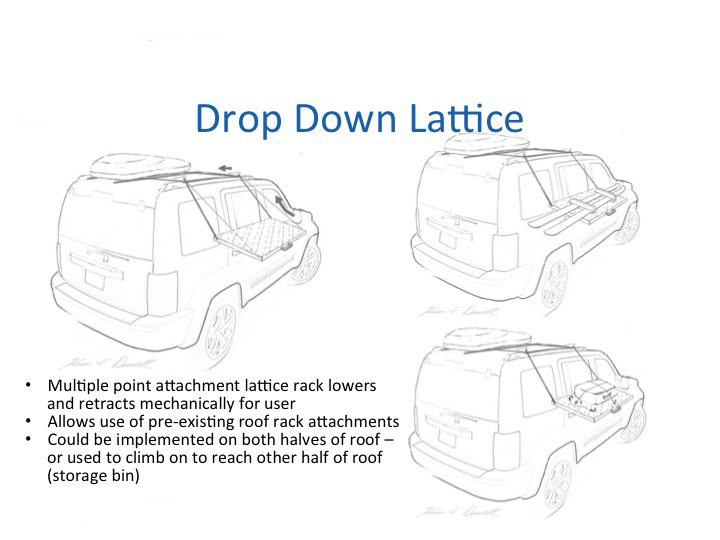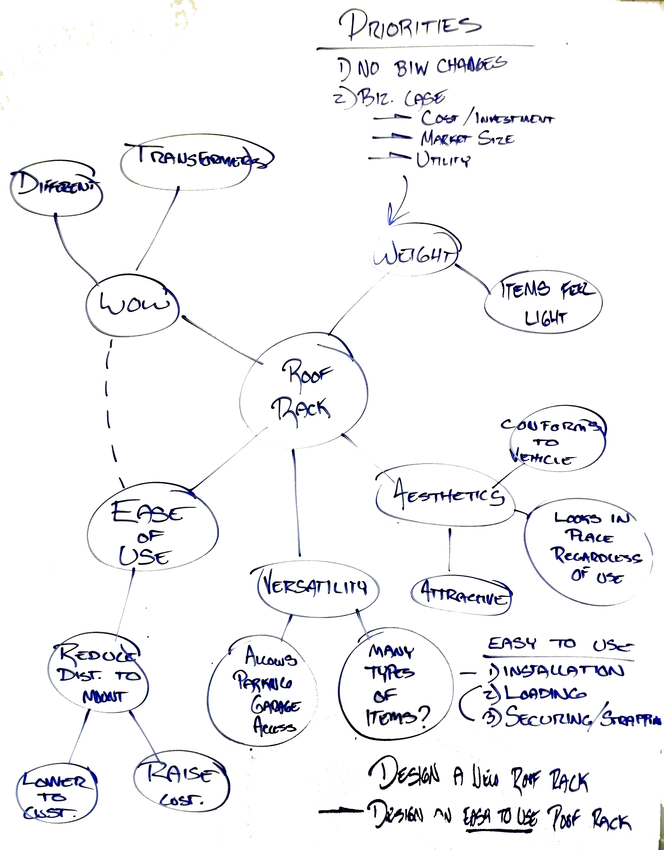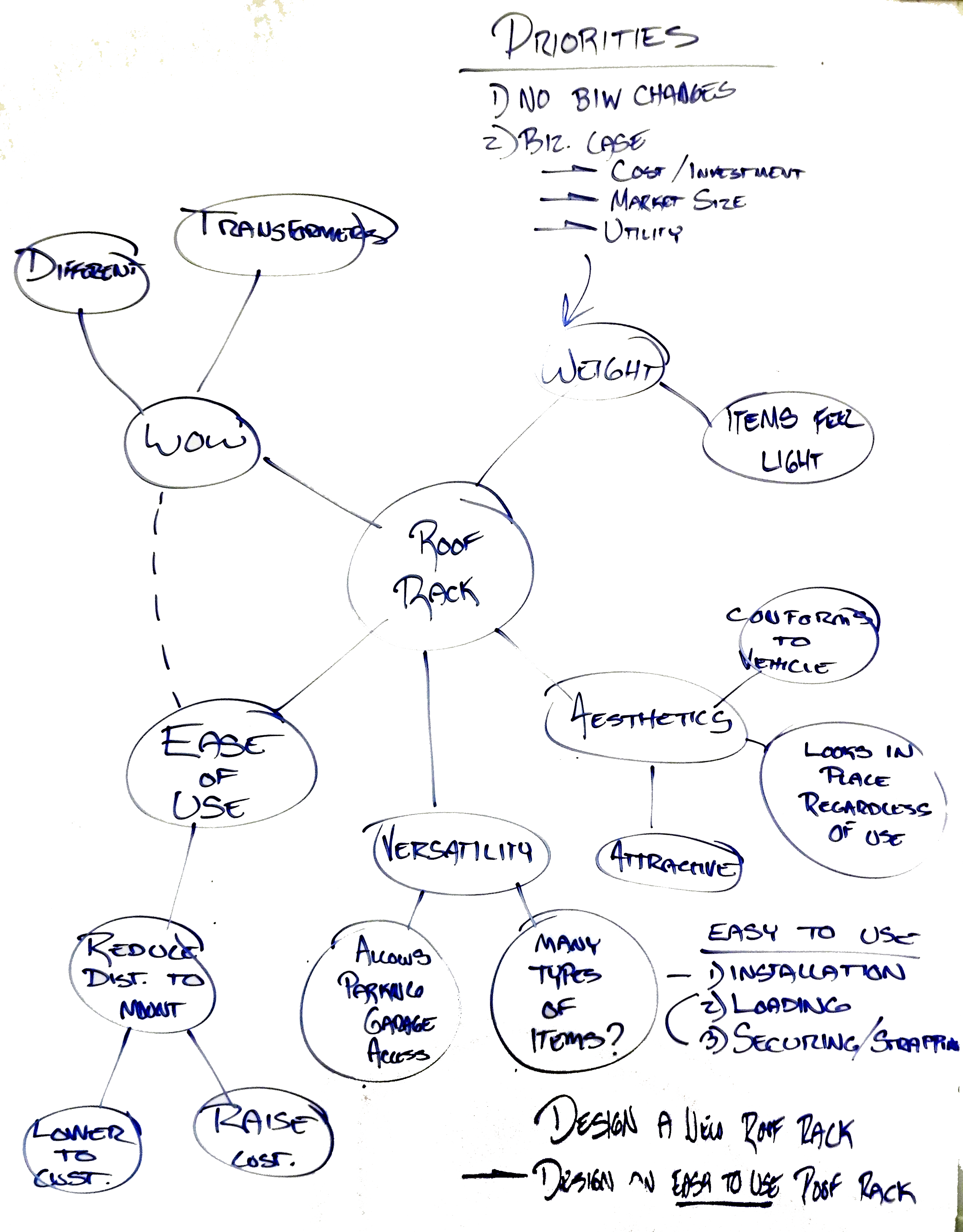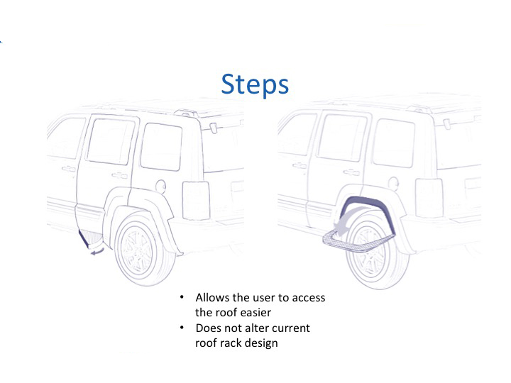 I led an innovation initiative at Chrysler to solve an age-old problem: make it easier to put stuff on a roof. Ethnographic research, design thinking workshops, ideation, affinitization, rapid prototyping and lots of repetition yielded the final designs above. an Invention Development Record (IDR) was submitted and an exhaustive prior art search was conducted, to ensure the design was not infringing upon any patents. I received the Design Innovation in Feature Planning award from the Senior Vice President of Engineering. The final roof rack design was debuted as a MOPAR option for the 2014 Jeep Cherokee and 2014 Fiat 500L. The all-new 2016 Fiat 500X also has the easy-to-load roof rack as an option. It was a rewarding to have a hand in bringing a rough idea to a tangible consumer product that people are using around the world today. Granted, I quickly realized that even innovation teams within large companies have a difficult time delivering final products outrageously different from what's currently available on the market.