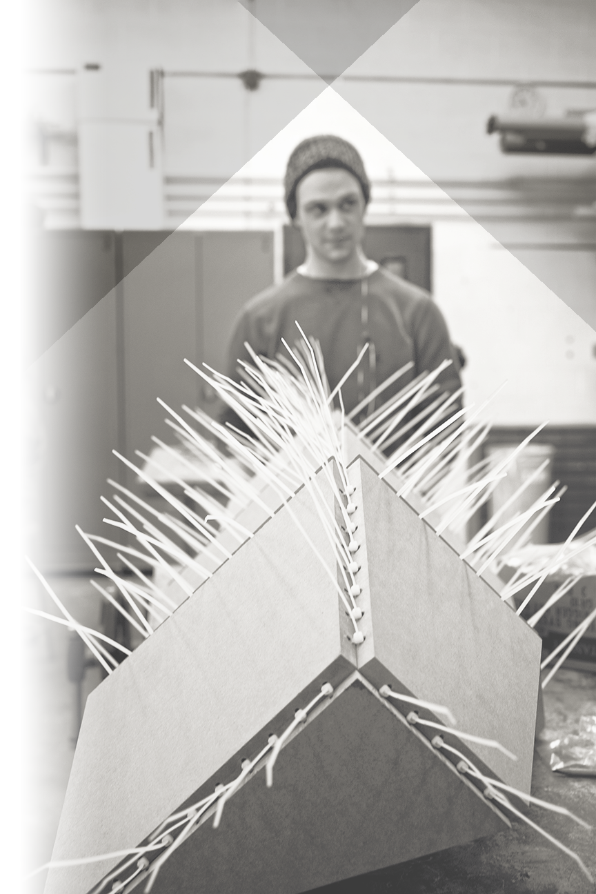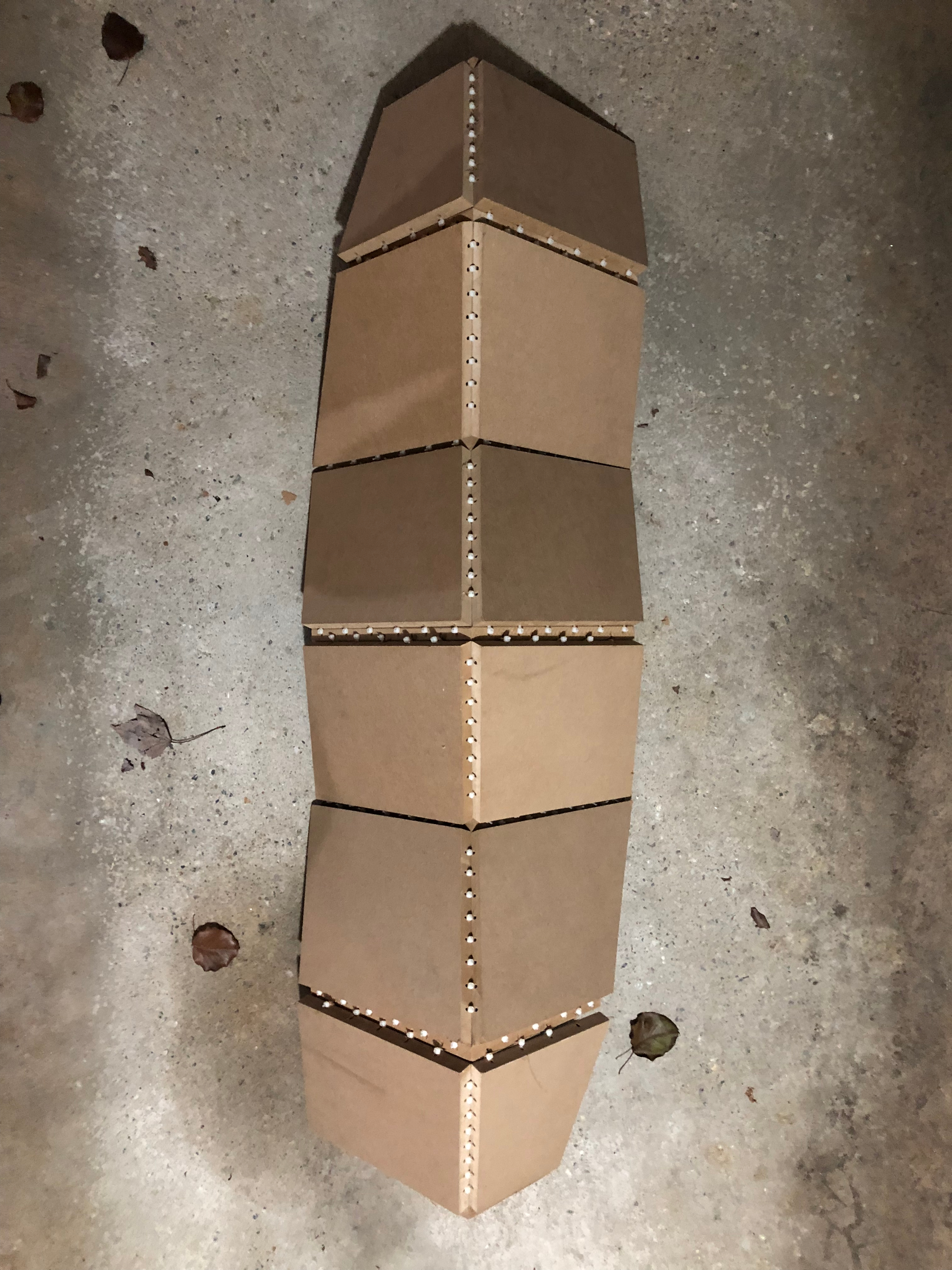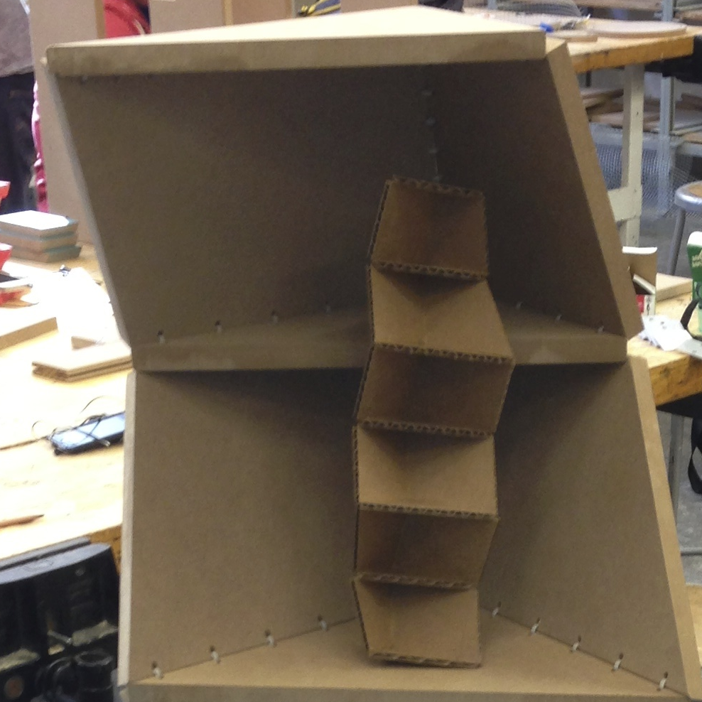 This project was the result of a challenge to create a piece of furniture from a single 4' x 4' Medium Density Fiberboard sheet. I had seen zip ties used in furniture design in some corner of the internet previously, and wanted to test the unconventional joining method myself. The outcome was a geometric shelving unit. The zipties held the structure together pretty well initially, but over the last few years they have begun to sag under the weight of the MDF.