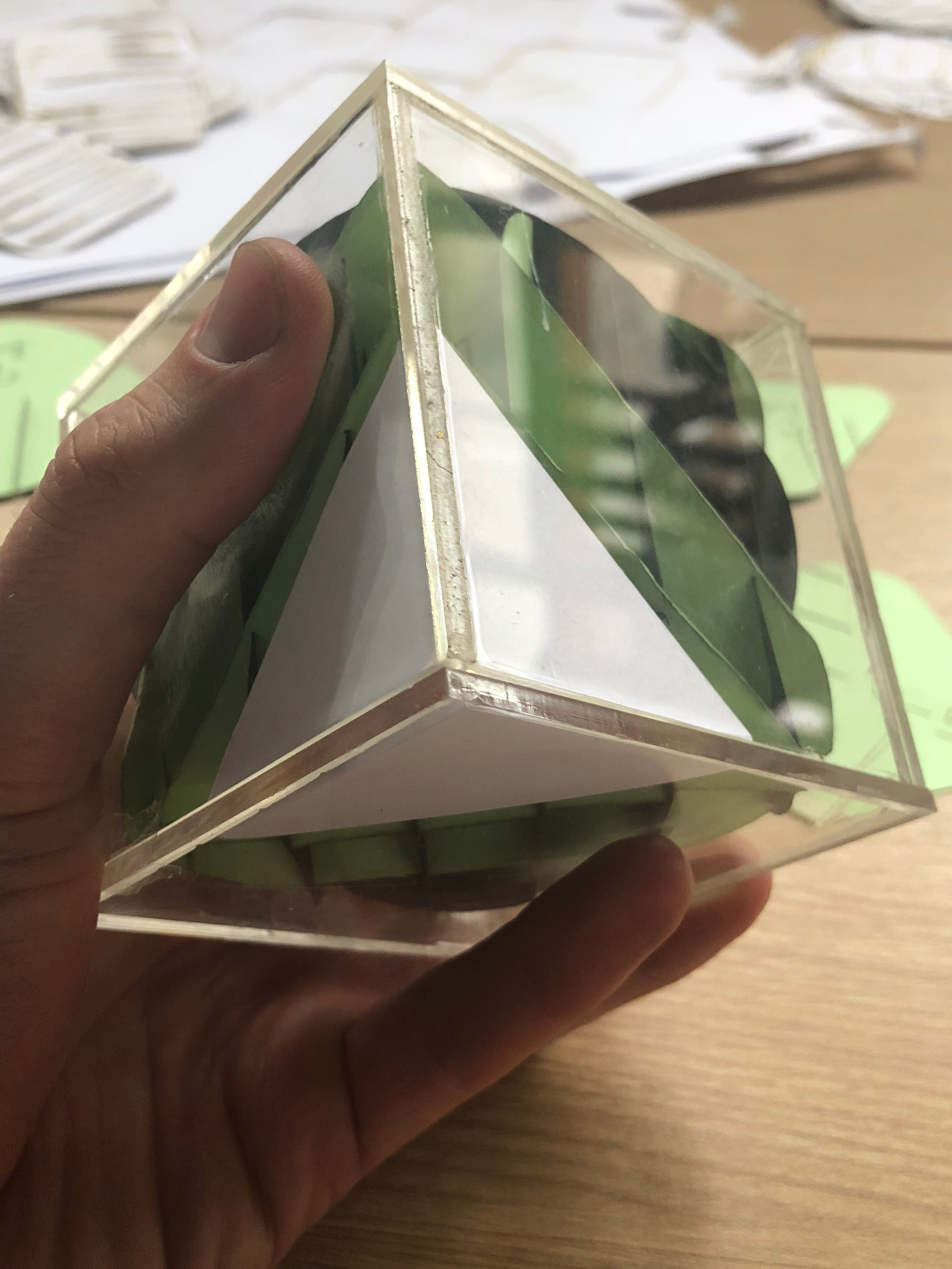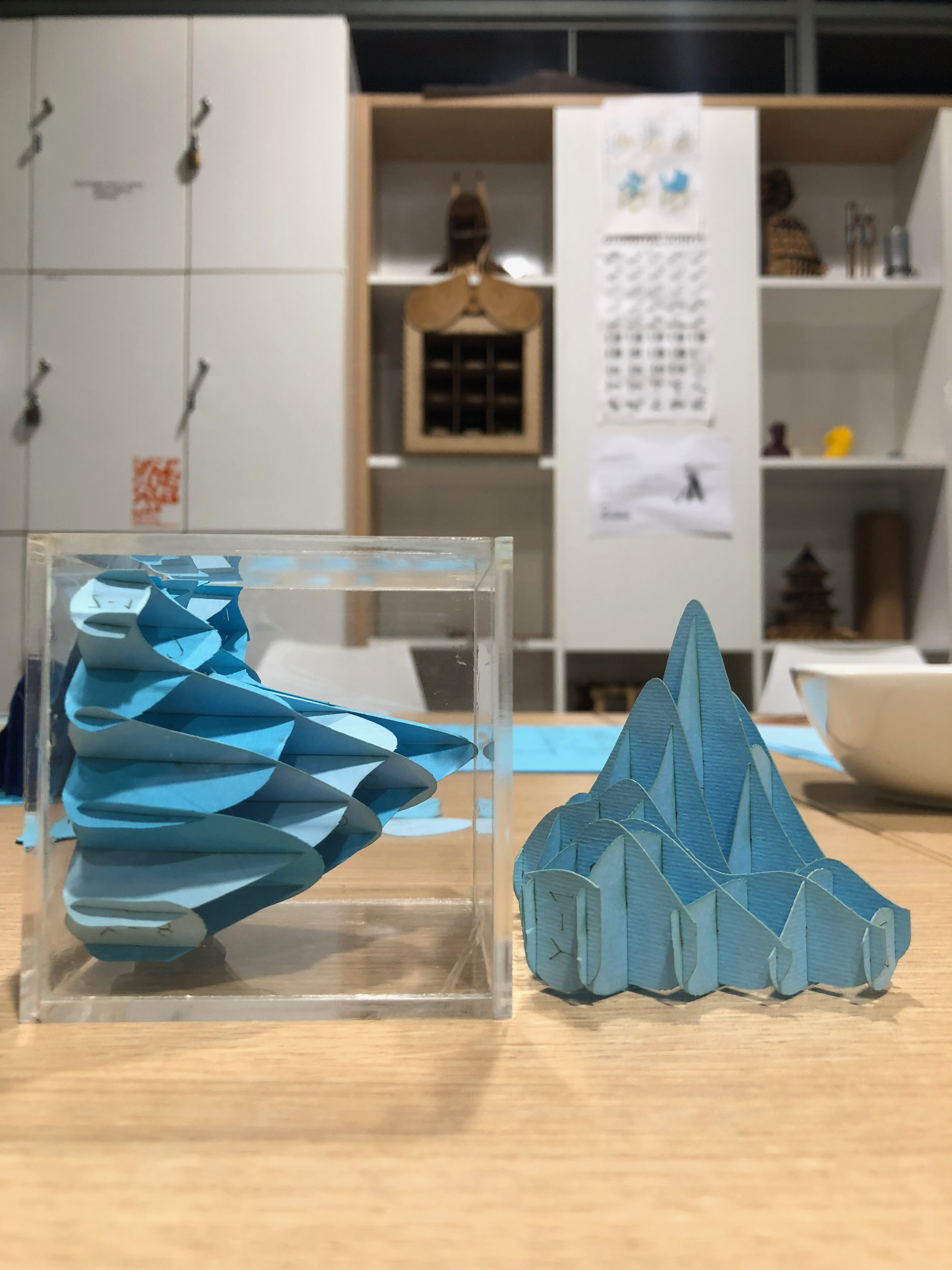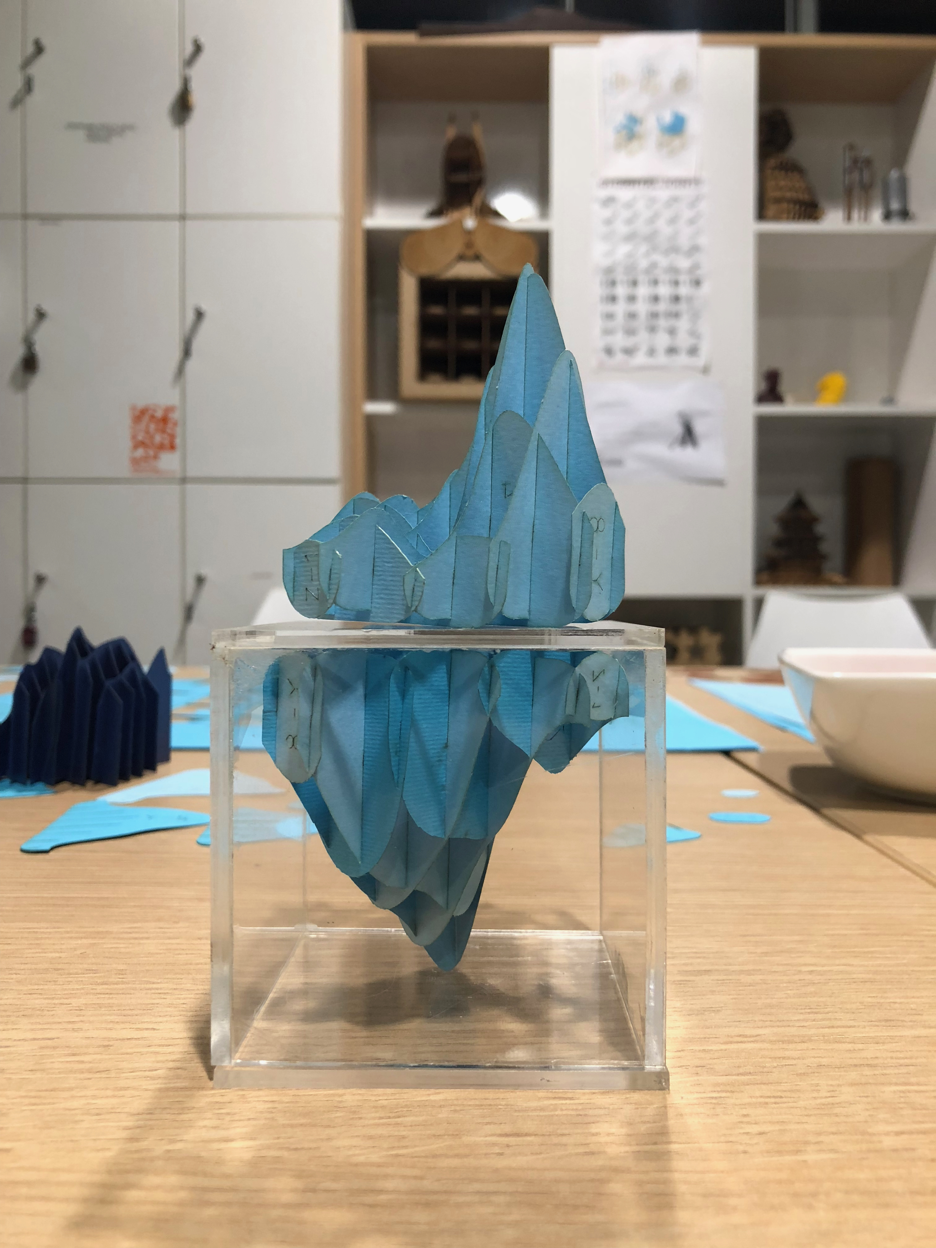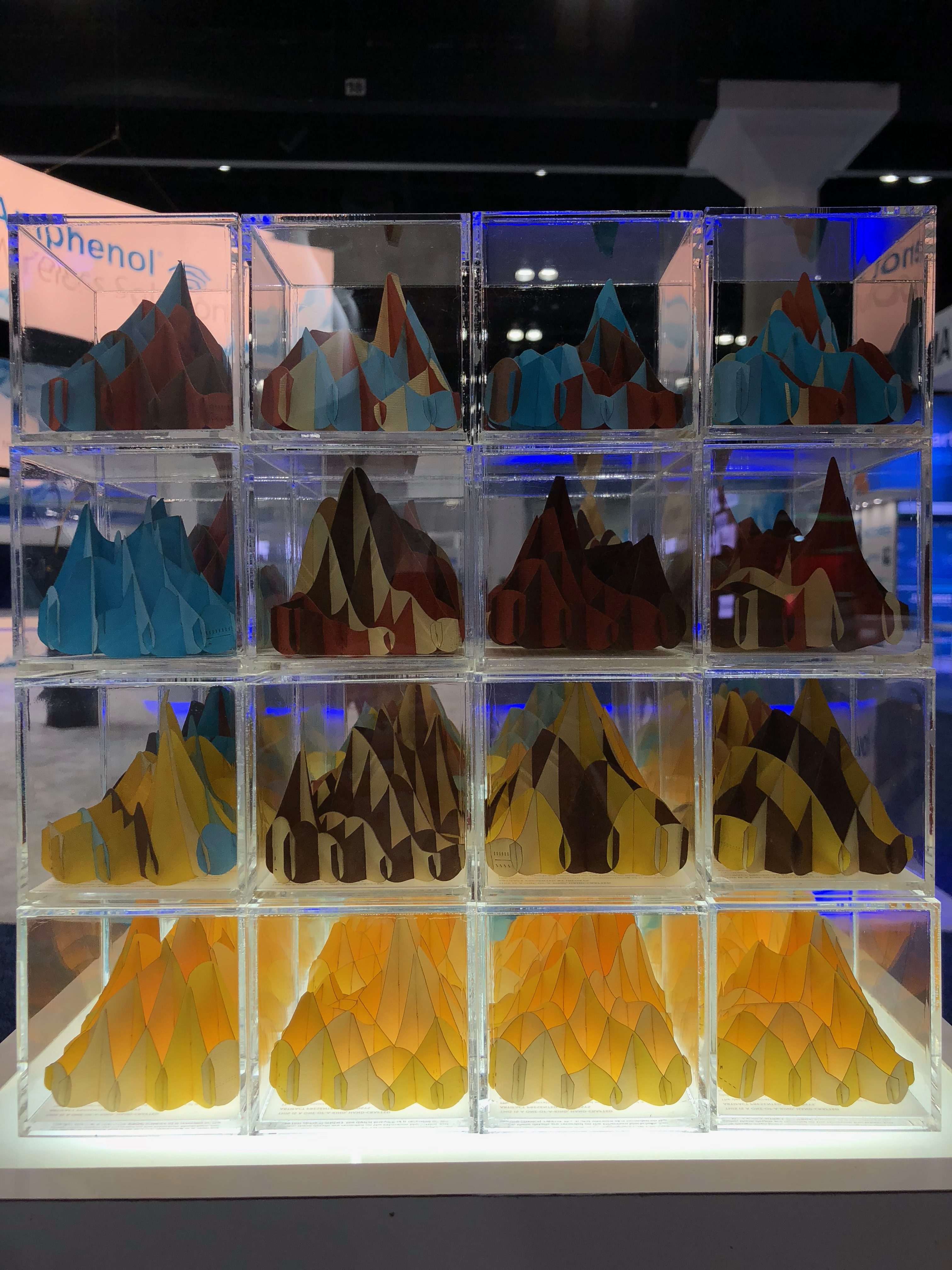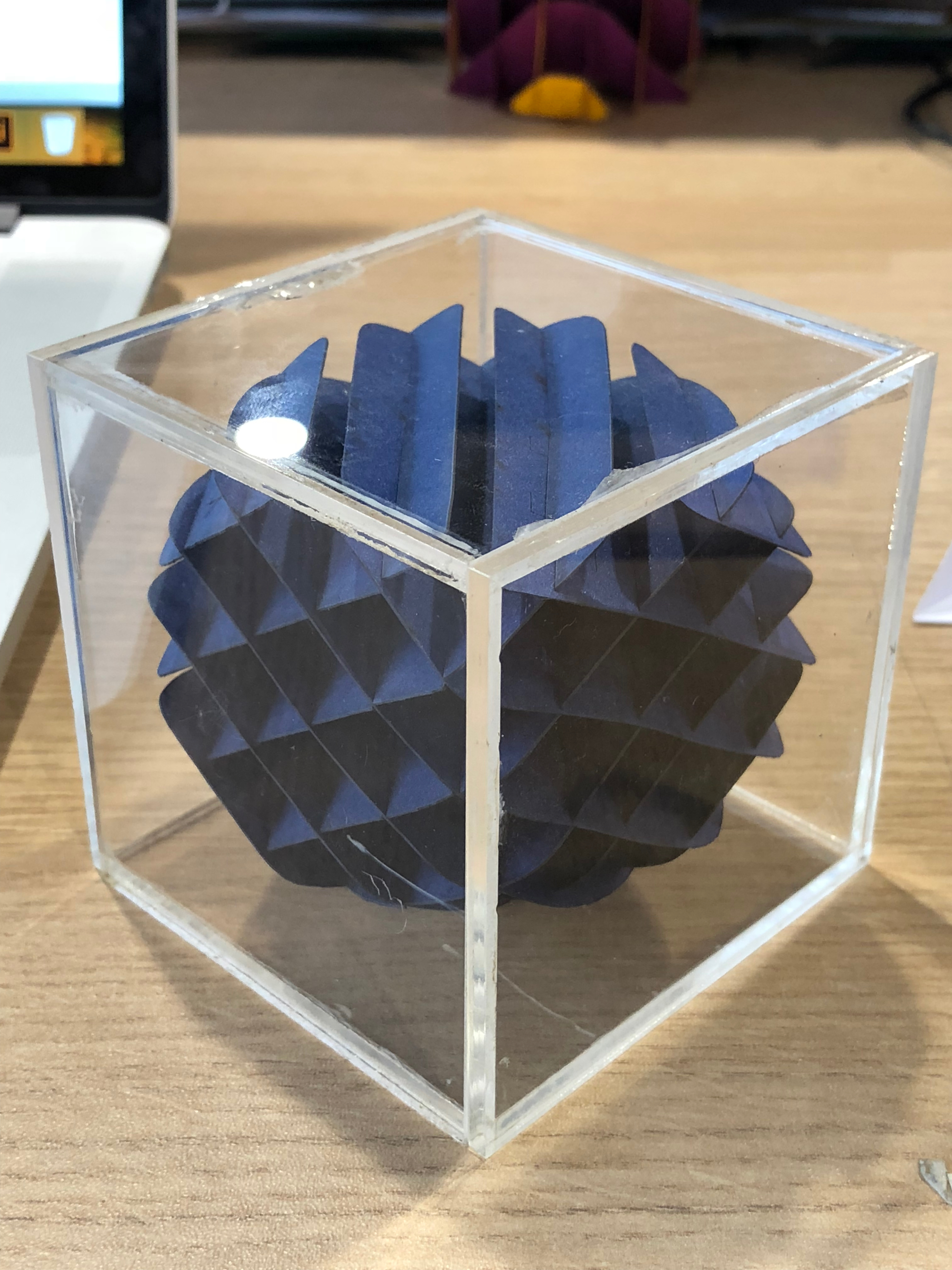 From Colombia, I traveled with the 500 assembled origami artifacts to Boston for packaging in acrylic. From a display perspective, we felt housing these in acrylic would make them feel more like artifacts, museum-exhibit-esque. The acrylic didn't turn out exactly as we had planned, so there was a last minute rush of adjusting components for everything to fit together, and achieve the aesthetic we intended. Shortly after packaging was complete, I brought them on the road to preach the word of digital scarcity.
