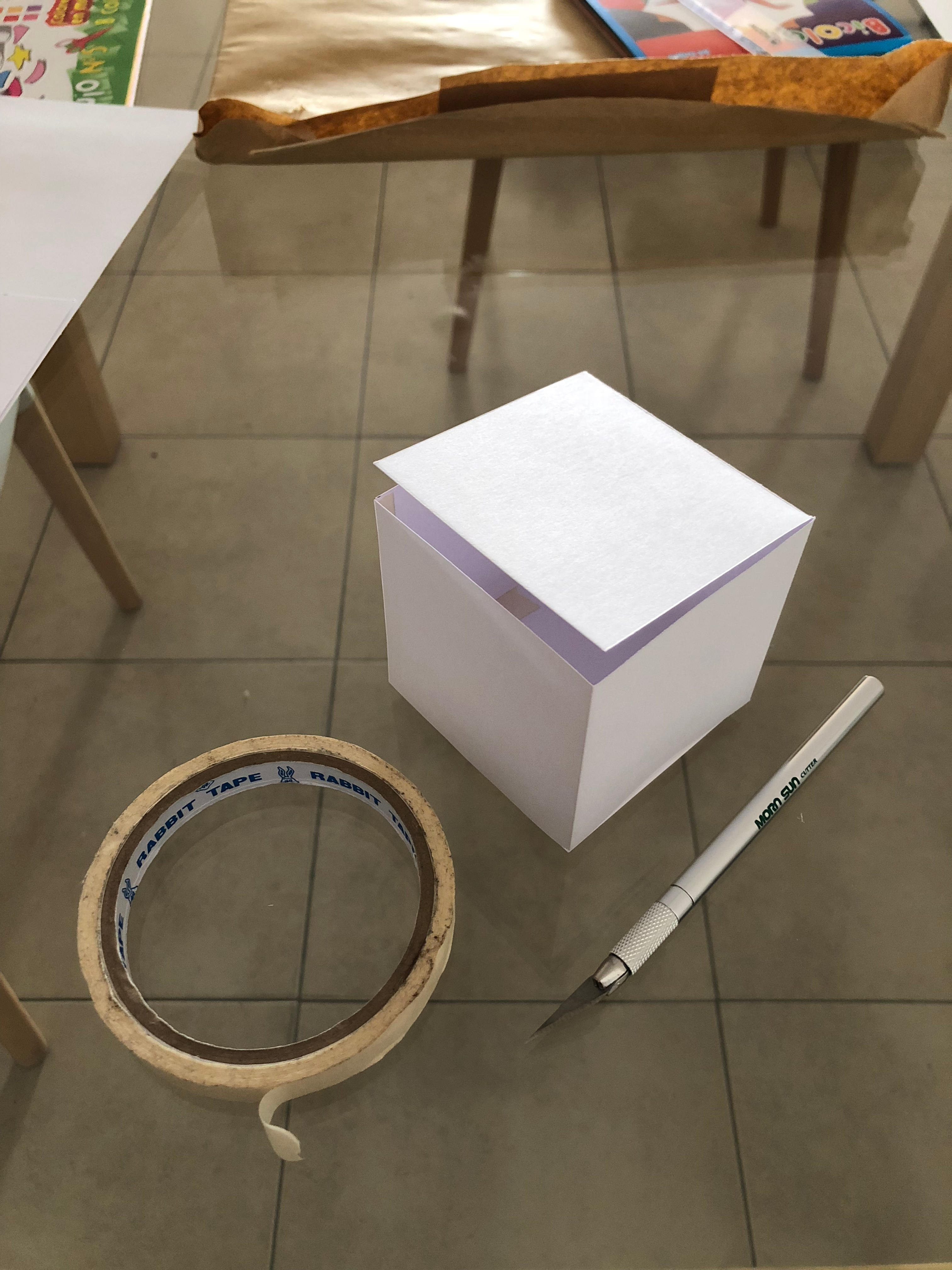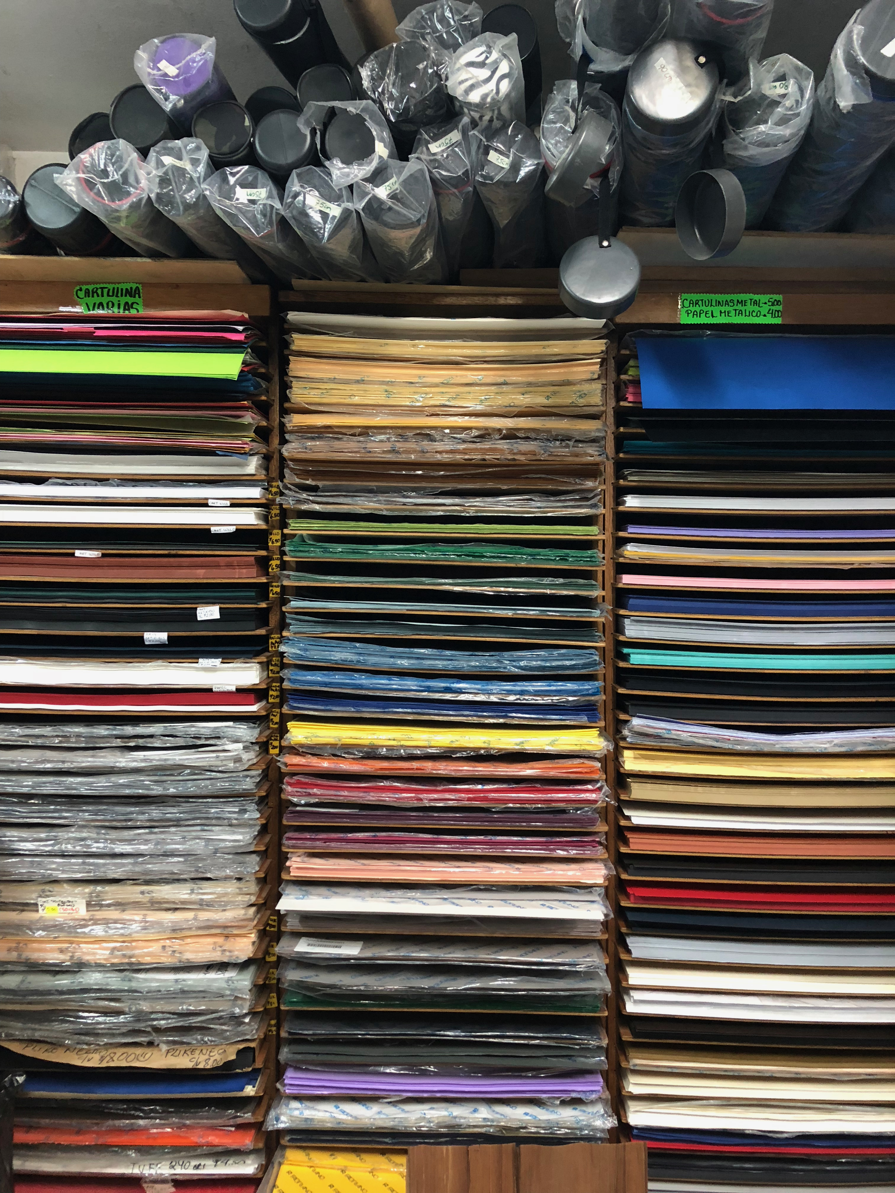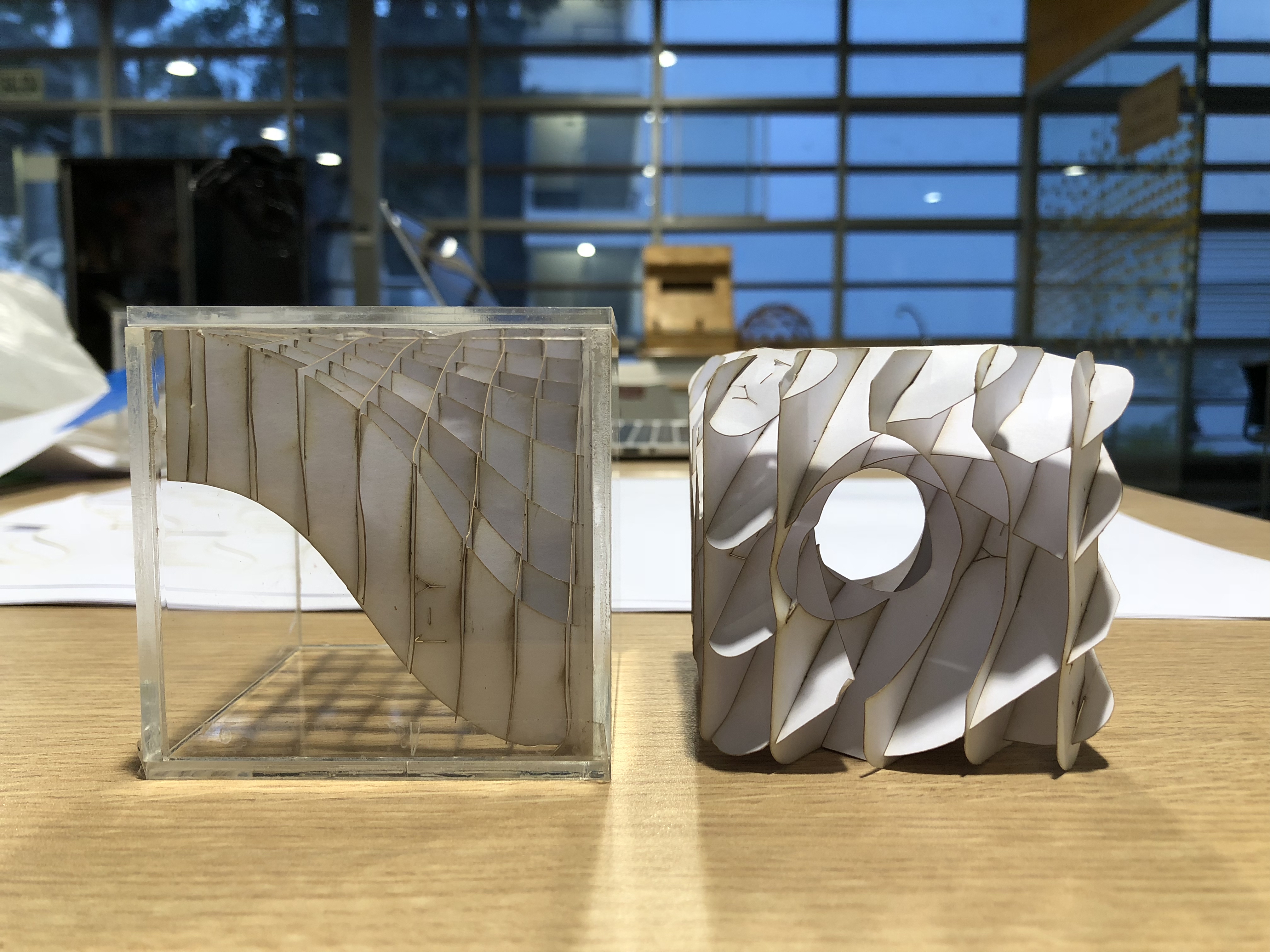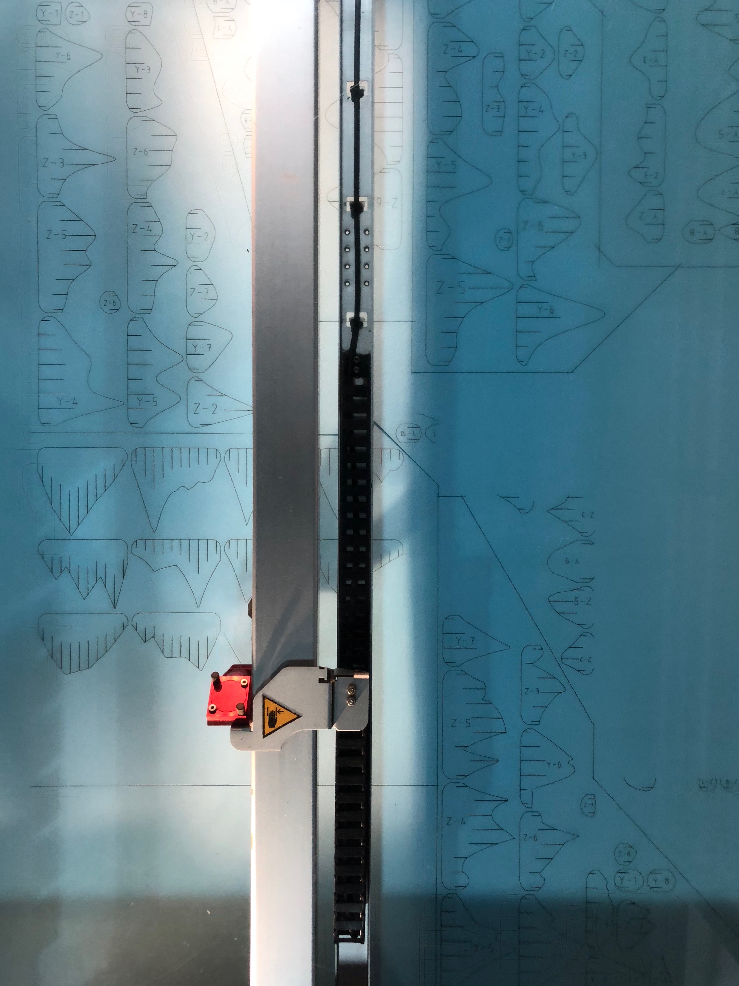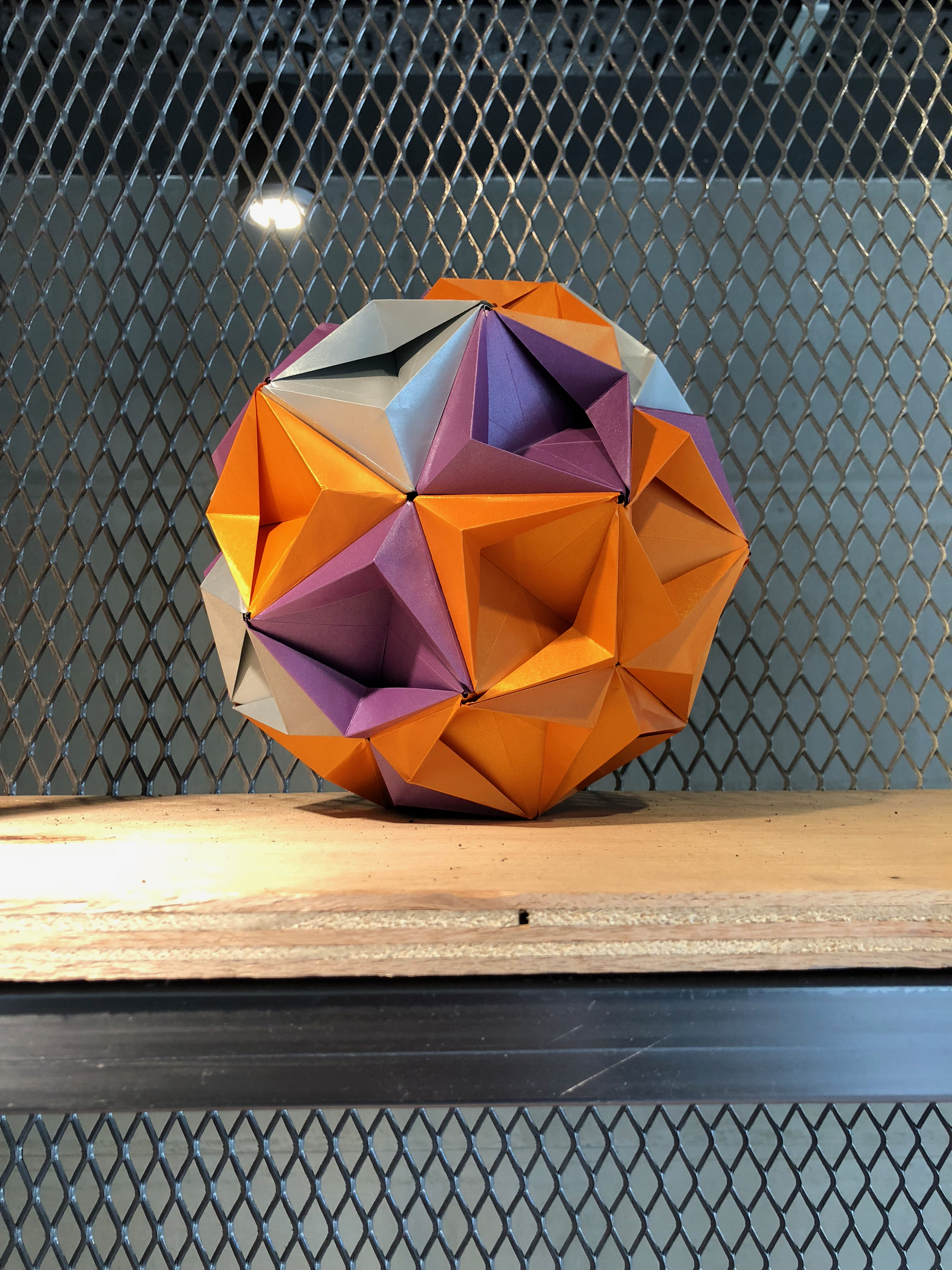 At the time, I had recently left my job to travel and freelance with a creative crew of folks. My friend, Chris, and I were exploring the Atacama Desert of northern Chile, while thinking about this project. The landscape ultimately had a large influence on the designs and color pallet of our artifacts. We chose origami as the unique physical artifact, it has a hand-assembled quality that emphasizes its uniqueness and physical nature. The experience required 500 pieces of origami, which posed an interesting design challenge for assembly and transportation while traveling. Developing 500 unique and appealing designs alone was tough, ensuring they also met this design criteria added another layer of complexity. Sliceform-origami allowed us to achieve a diverse set of designs we liked, while still packing flat for transportation. The majority of our experimentation and testing took place in Lima, Peru; ESAN University allowed us to prototype with the laser cutter in their fab lab. A small local laser cutting studio in Lima helped us with the massive amount of cutting required. The yellow sheet of paper to the right took about 2 hours to cut and yielded enough for 10 origami pieces.