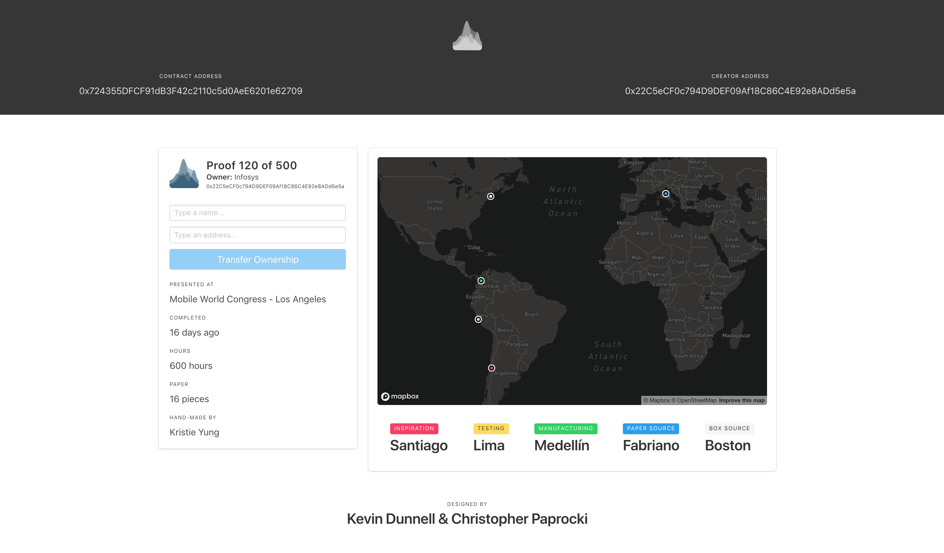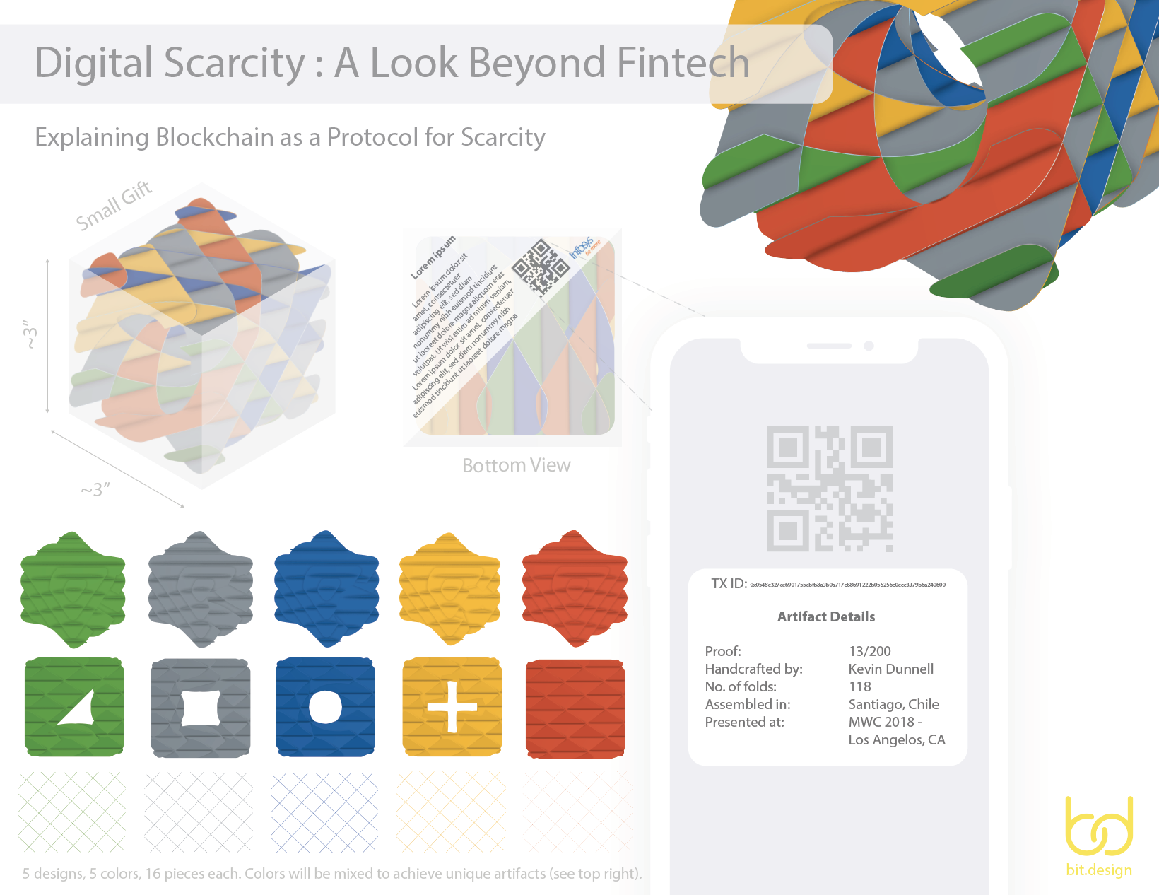 Blockchain is fascinating to me beyond the financial use cases - it's a protocol for scarcity and it trustlessly enforces smart contracts. The internet today is copy based - if I send an image to a friend, I'm not sending that image, I'm sending a copy of it. This is not how the physical world works, it physically cannot work this way. Blockchain changes this, it enables scarcity and uniqueness to exist digitally at the protocol level. By bringing this very real, seemingly trivial concept in our day-to-day lives, to the digital world we are bringing the digital world closer to the physical world. I see this process of bringing IRL concepts online as integral to furthering our interaction with the digital world and how it operates. This project was an opportunity to explain this perspective of blockchain to a large audience. I created hundreds of unique physical artifacts, connected them to a blockchain, and showed this connection through a web app to start this conversation.